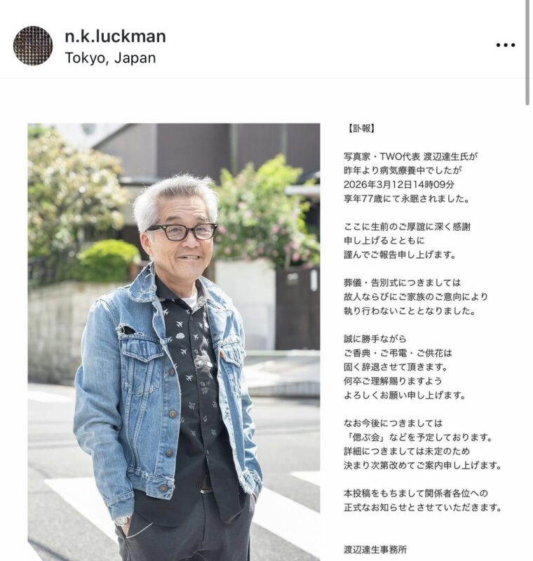 達生さんは2026.3.12にお亡くなりになり、そこから直アシスタントとその弟子達までが一斉に、自身のインスタグラムに達生さんの写真を掲載して弔った。一気にオススメにガンガン達生さんが出てきた光景は圧巻だった。